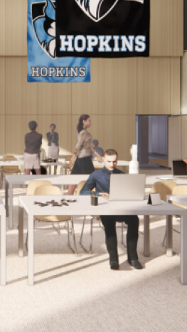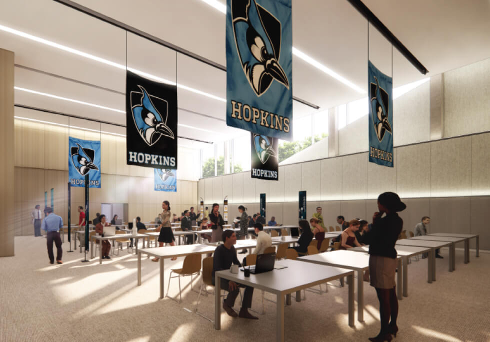 The new Hopkins Student Center will provide spaces, amenities, and opportunities for students who want to socialize, connect, create, and relax.
