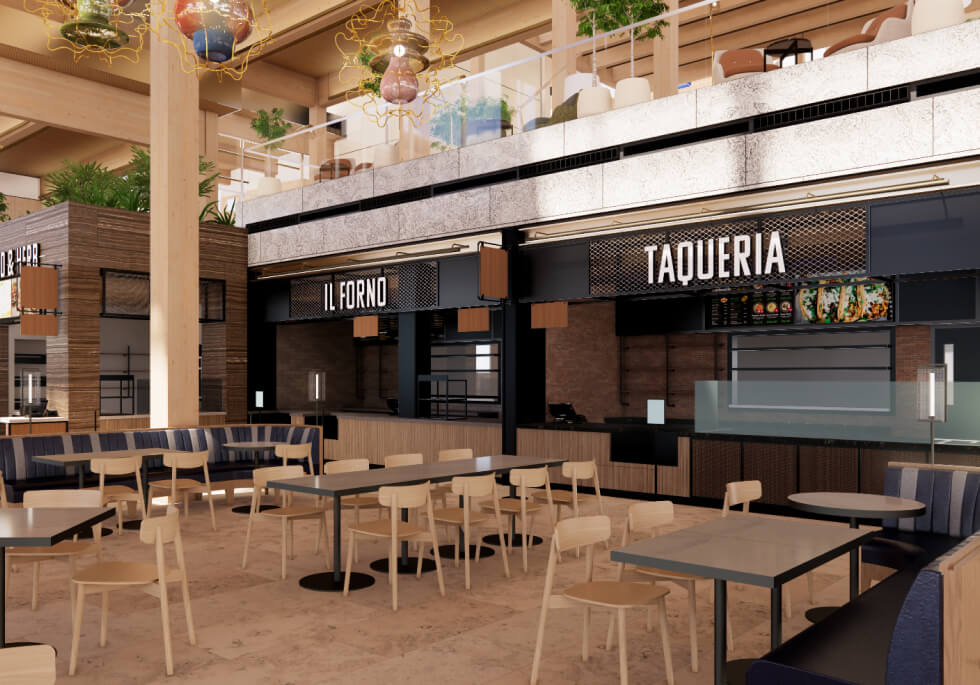 It includes the outdoor extension of the seating in the Food Hall, which is on the Terrace next to the entryway to the Theater.