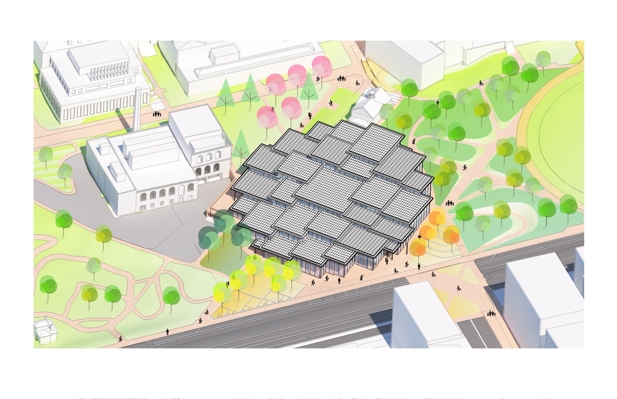 We held a global design competition, complemented by university-wide engagement like forums and focus groups. Over 1,200 students, faculty, staff, and alumni evaluated finalists, with the BIG design proposal receiving the most enthusiasm.